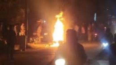 जयपुर में बेकाबू भीड़, स्कॉर्पियो में तोड़फोड़ और बाइक जलाने की घटना