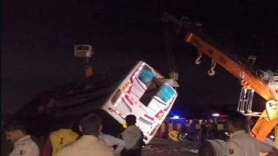 हैंगिंग ब्रिज के पास बस हादसा, 12 से ज्यादा घायल, तीन की जान गई