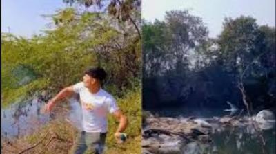 फेमस बनने के चक्कर में कानून तोड़ा, मगरमच्छों के बीच सुतली बम फेंका