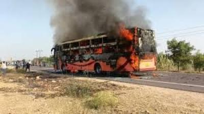 चलते-चलते बस में लगी आग, यात्रियों ने कूदकर बचाई जान