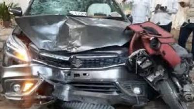 टक्कर के बाद उछलकर दूर जा गिरा युवक, मौके पर मची अफरा-तफरी