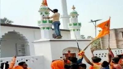 दिल्ली के तुगलकाबाद में तनाव, शोभायात्रा के बीच मस्जिद पर चढ़े युवक