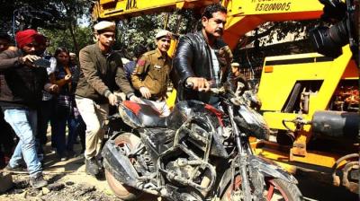 टक्कर के बाद उछलकर दूर जा गिरा युवक, मौके पर मची अफरा-तफरी
