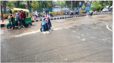भोपाल में लोक भवन के सामने सड़क धंसने से हड़कंप, पानी भराव से लोग परेशान