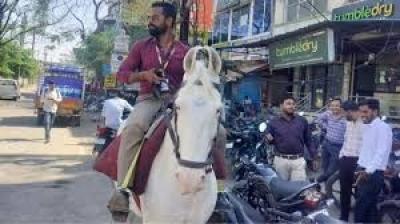 पेट्रोल नहीं मिला तो घोड़े पर निकला कर्मचारी, देवास का वीडियो वायरल