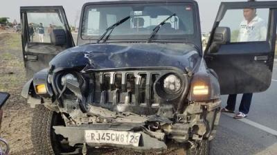 थार और कार की आमने-सामने जोरदार भिड़ंत