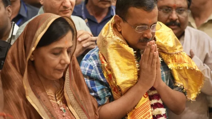 आबकारी केस में राहत के बाद मंदिर पहुंचे केजरीवाल-सिसोदिया