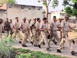 गांव में पुलिस ने निकाला फ्लैग मार्च