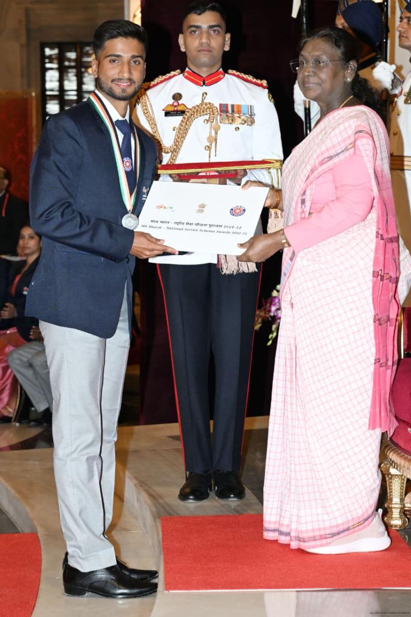राष्ट्रपति ने एनएसएस के स्वयंसेवक आयुषी सिन्हा एवं सौमित दुबे को किया पुरस्कृत