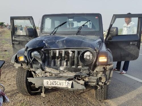थार और कार की आमने-सामने जोरदार भिड़ंत